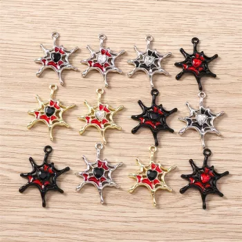5pcs Halloween Spider Web Charms – Crystal Metal Pendants for Jewelry DIY